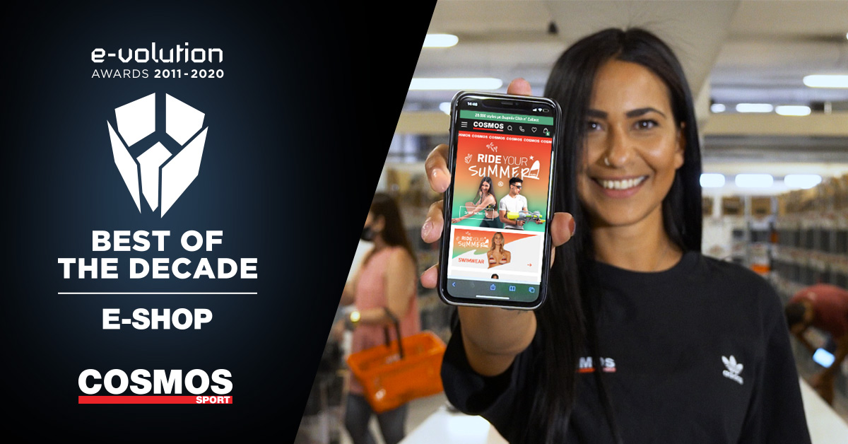 To cosmossport.gr βραβεύθηκε στα Κορυφαία e-Shops της Δεκαετίας από τα e-evolution awards! Το Βραβείο αυτό ανήκει στους ανθρώπους μας, που το ταλέντο, η θέληση & το χαμόγελό τους δίνει πνοή στο cosmossport.gr. Μαζί, κάνουμε καθημερινά τον κόσμο μας καλύτερο.